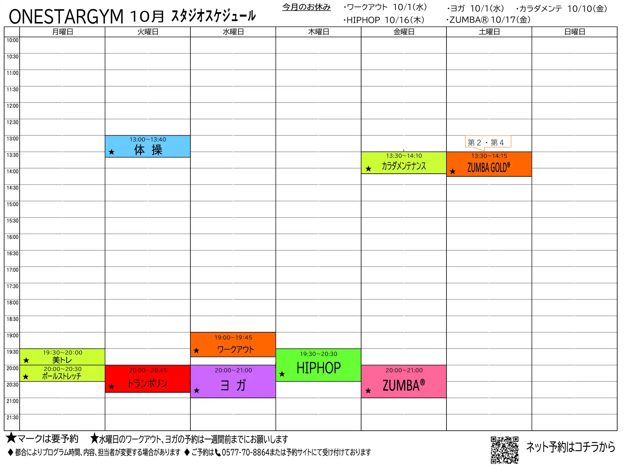 ※★マークのクラスレッスンは予約ページからの予約が必要です。